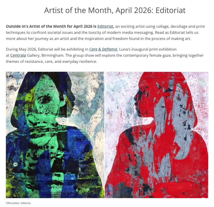 - “Other artists have questioned the spaces from which they feel alienated. Combining text and image in her prints, Editoriat highlights public spaces where women often feel unsafe, particularly late at night.”